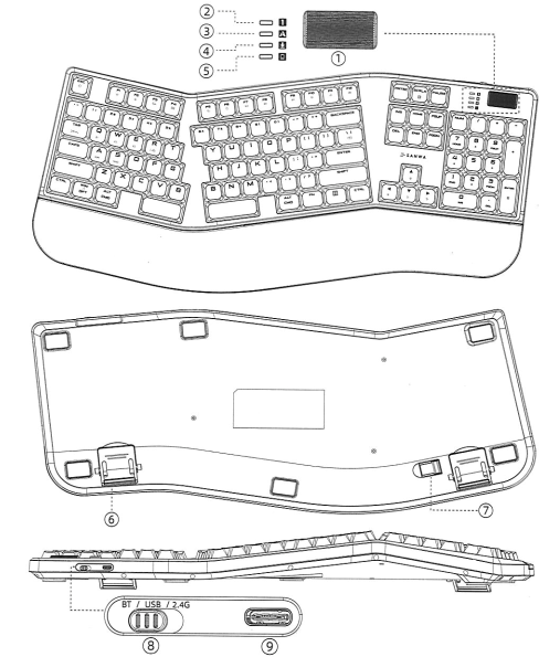1) Извлеките адаптер USB 2.4G из задней части клавиатуры.