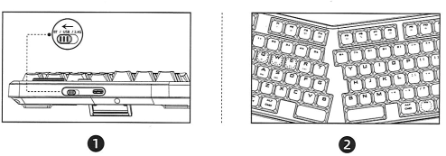 2) Установите переключатель режима подключения на передней панели клавиатуры в положение 2.4G.