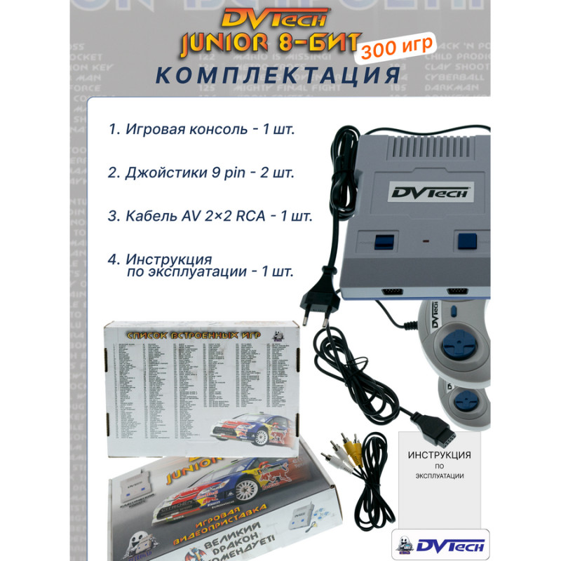 DVTech Junior — это ретро игровая приставка и настоящая находка для ценителей 8-битной эпохи. Приставка имеет характерные черты классических консолей, при этом предлагая современные удобства. Забудьте о картриджах — всё необходимое уже встроено!