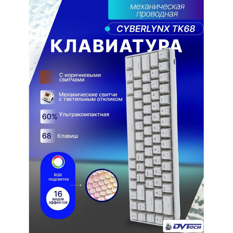 Откройте для себя мир высококачественного ввода с механической клавиатурой CYBERLYNX TK68. Эта клавиатура — отличный выбор для геймеров и профессионалов, которые ищут сочетание надежности, функциональности и стильного дизайна.