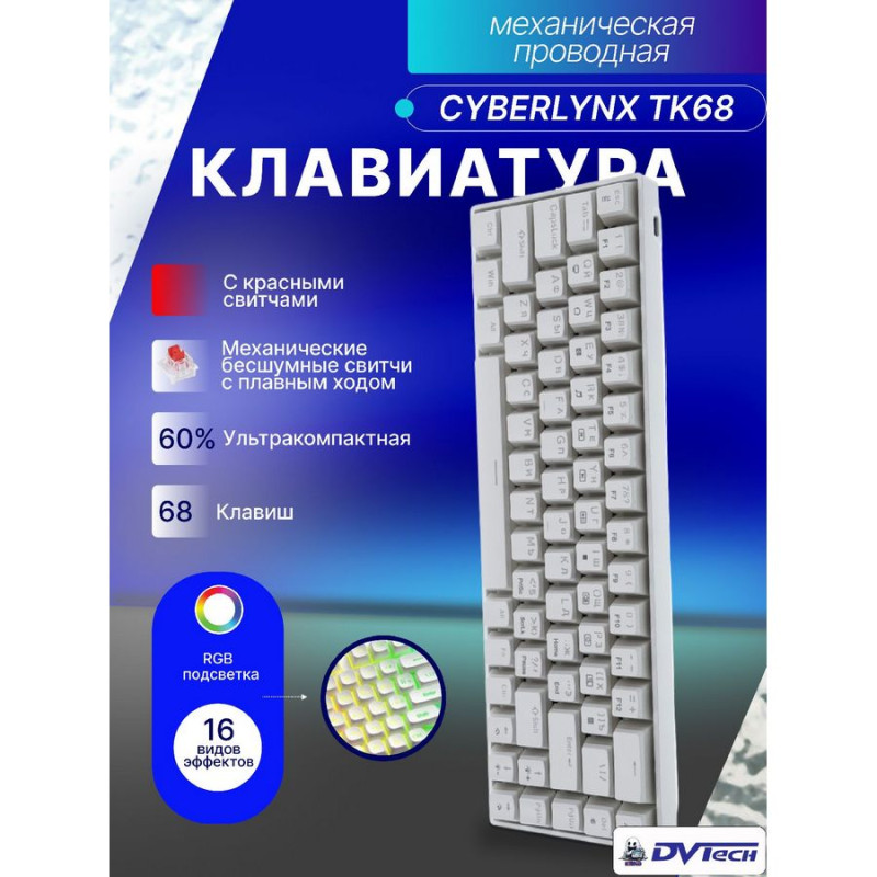 Выберите механическую клавиатуру CYBERLYNX TK68 для яркого и комфортабельного опыта ввода. Ее многоцветная RGB-подсветка, надежные механические переключатели и компактный дизайн делают ее идеальным выбором для любого пользователя. Поднимите свой опыт использования на новый уровень с CYBERLYNX TK68 — это не просто клавиатура, а ваш верный помощник в любых задачах!