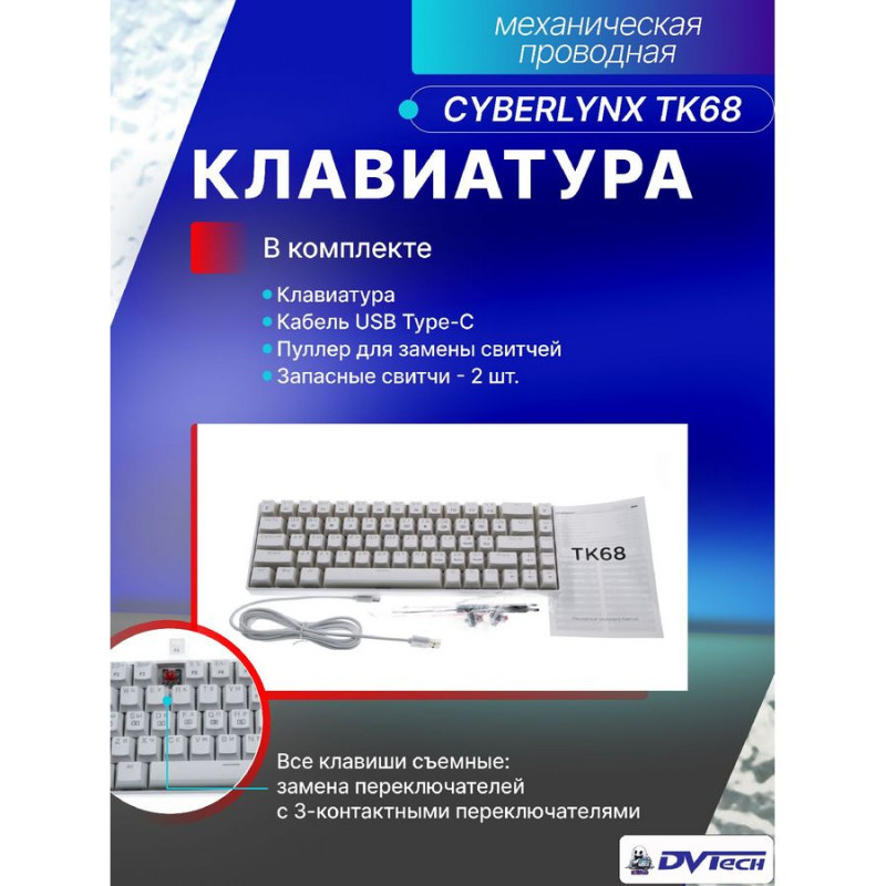 Откройте для себя мир высококачественного ввода с механической клавиатурой CYBERLYNX TK68. Эта клавиатура — отличный выбор для геймеров и профессионалов, которые ищут сочетание надежности, функциональности и стильного дизайна.